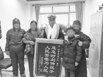 被救男孩及亲属向曲尼送来锦旗致谢 德格县公安局供图