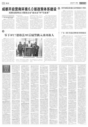 本报讯(李於松 四川法治报全媒体记者 张磊)零下8℃的天气里不会游泳的他纵身跃入冰河没有一丝犹豫……2023年12月23日16时许一名男孩为捡篮球掉入河里
