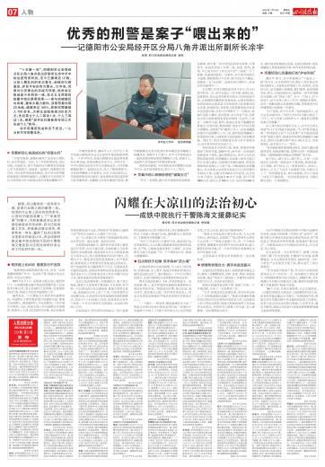 张翔 四川法治报全媒体记者 俞阳 “十年磨一剑”而德阳市公安局经开区分局八角井派出所副所长凃宇手中的这把刑侦利剑至今已磨砺近12载从初入警队时的有志青年
