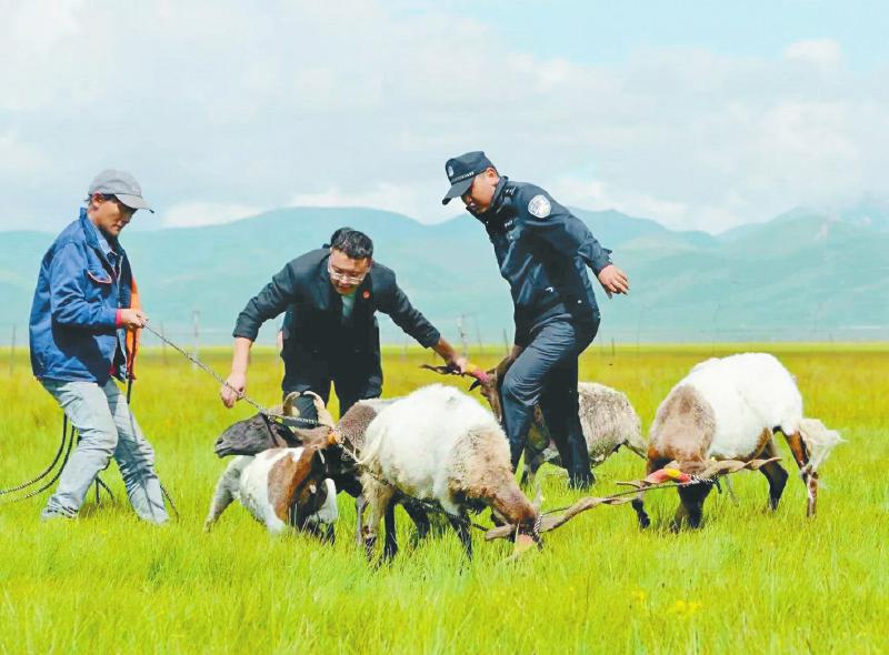 若尔盖县法院执行干警前往下热儿村牧场,现场清点羊只,促成双方当事人以羊抵债