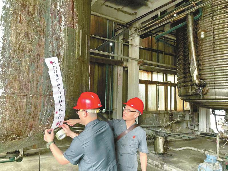 省高院供图成都市青白江区法院执行干警现场查封涉案化工企业的生产储存设备