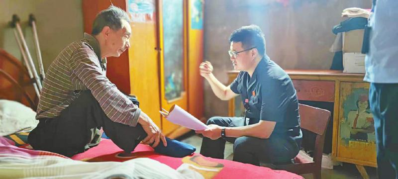 剑阁县法院执行法官在普安镇前锋村村民家中开展司法救助政策宣讲