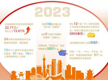 2023年,全省检察机关忠实履行法律监督职能,一体推进刑事、民事、行政、公益诉讼“四大检察”和检察侦查工作,全年共办理各类案件22.71万件,同比上升13.61%。其中,24件案件被最高人民检察院评为全国指导性案例、典型案例。
