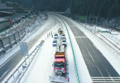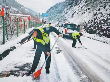 1.21日,G4217蓉昌高速桃坪至马尔康段突降大雪,四川高速公安一分局十七大队民辅警做好除雪保畅工作 四川高速公安一分局供图
