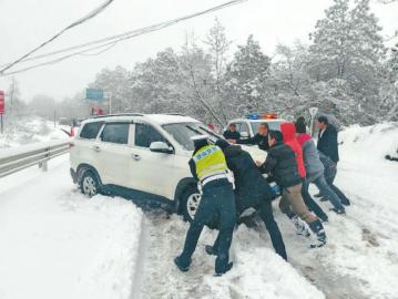 2.泥巴山降雪,汉源交警采取有力措施帮助车辆脱困 汉源公安供图