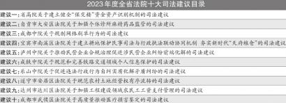 近日,省高院公布了2023年度十大司法建议。记者注意到,作为全省首份行政自纠司法建议,乐山中院关于促进违法行政行为自纠实质化解矛盾纠纷的司法建议位列其中。记者从省高院了解到,2023年,我省法院共发出司法建议 3579 件,收到回函3273件,司法建议数量、质量位居全国法院前列。