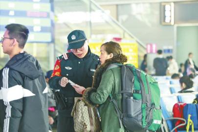 成铁公安民警在成都东站内为旅客提供服务