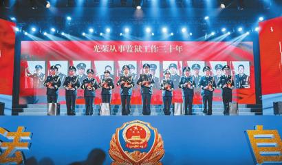 为光荣从事监狱工作30年民警颁发纪念徽标