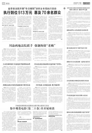 “司法大拜年”专项执行行动开展以来为推动“切实解决执行难”落地进一步增强人民群众司法满意度盐亭县法院开展为期两周半的“冬日暖阳”涉民生专项执行活动