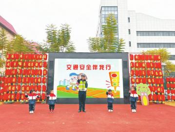 新学期开学第一天,26日,眉山市公安局交警支队直属二大队宣传民警走进百坡实验幼儿园,以寓教于乐的方式,为小朋友上了一堂生动有趣的“开学第一课”。 民警从幼儿的认知和接受能力出发,以生动活泼的语言,通过播放交通安全宣传片和孩子互动等形式让他们掌握交通安全知识。同时,针对幼儿的年龄特点,民警们对交通指挥手势进行教学演示,通过学习交通手势让孩子们认识并了解了各种交通信号标志、车辆行驶的交通规则、行人在马路上行走应遵守的交通安全知识等。 王煦 四川法治报全媒体记者 熊勇摄影报道