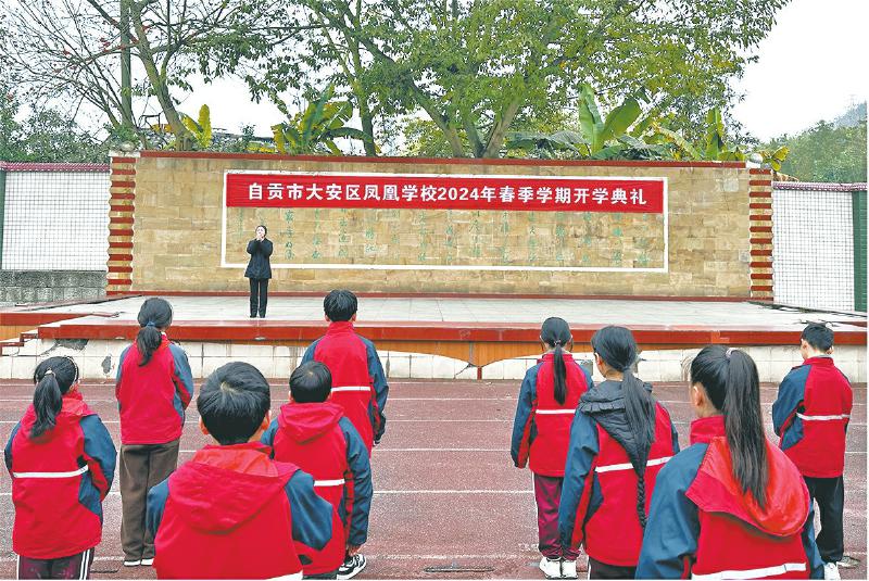 法官在自贡市大安区凤凰学校的开学典礼上开展法治宣讲