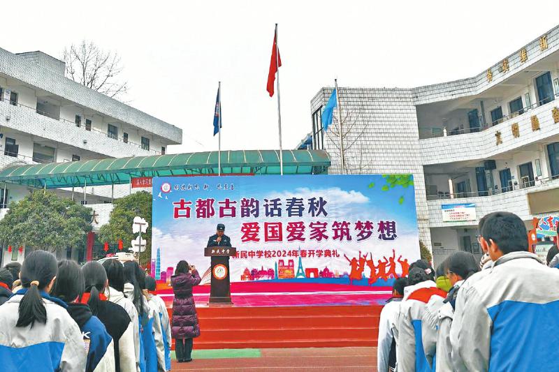 成都新都公安民警在开学典礼上为学生带来“开学第一课”