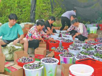 李子成熟后,村民采摘、装盒、包装……忙得不亦乐乎