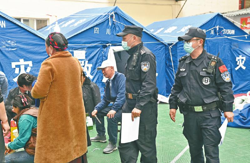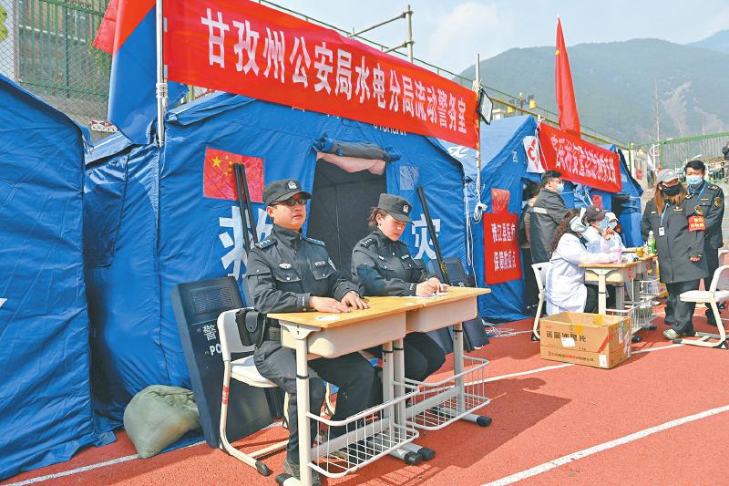 雅江县呷拉镇教育园区内的临时安置点建设面积较大、安置受灾群众较多。针对这种情况,甘孜州公安局水电分局流动警务室实行24小时勤务模式,通过动态不间断巡查走访、核实信息登记、协助发放物资等举措帮助受灾群众渡过难关,让大家时刻感受到暖心服务就在身边。