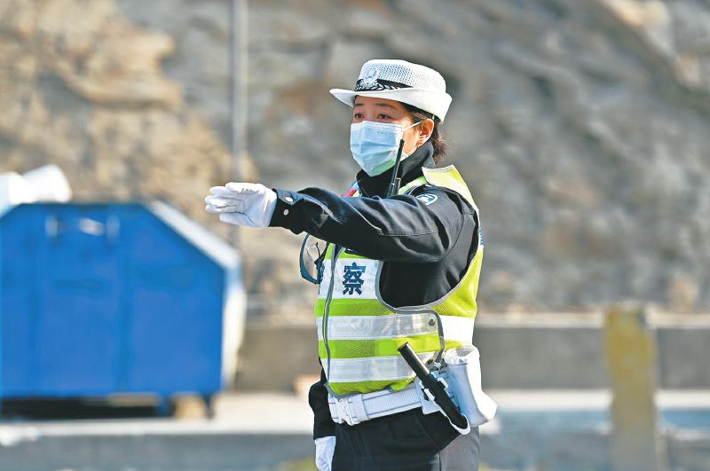 3.交警黎红指挥救援车辆快速、有序进出县城