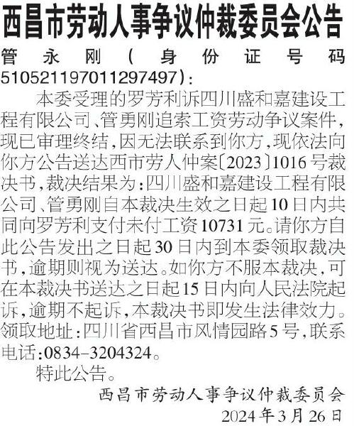 成都市龙泉驿区劳动人事争议仲裁委员会公告