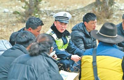 “乡亲们,大家骑车一定要戴好头盔,酒后一定不能驾驶机动车,千万不要超载。”在道孚县团结村内,村民们正围坐在王再兵身旁,认真听着他宣讲道路交通安全知识。