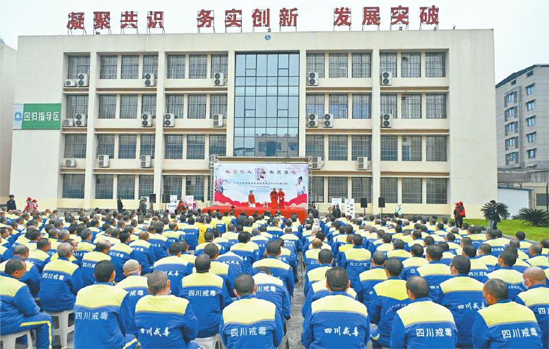 据悉,泸州市强戒所注重以文化人、以法润人、以情感人、以心共情,积极从中华优秀传统文化中汲取营养和智慧,努力探索将中华优秀传统文化融入戒毒教育矫治实践,不仅开设《三字经》《弟子规》国学特色课堂,组织诵读经典,开展红色观影等活动,还将“精忠报国、笃实宽厚、仁爱孝悌、谦和好礼、勇毅力行”等蕴含中华传统美德的文化经典巧妙融入到戒毒人员的教育教学中,使戒毒人员知荣辱、明事理、懂感恩、善言行,切实提升戒治内驱力。