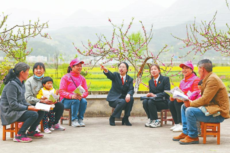 汪叶(中)和同事到农家小院进行回访 朝天区法院供图
