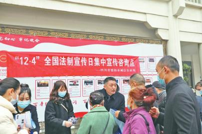 阳文东(左五)开展法治宣传 诚信公证处供图