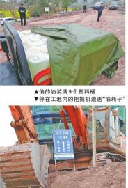 3月9日晚,资阳市雁江区宝台镇江河坝村成达万高铁工地附近,一村民听到家门外有异常动静,发现是“油耗子”正在抽一辆停在工地内的挖掘机油箱内的柴油。村民赶紧打电话通知车主过来看看情况。与此同时,“油耗子”也听到了村民打电话报警的声音,于是赶紧放下手里的东西,一路小跑离开了现场。