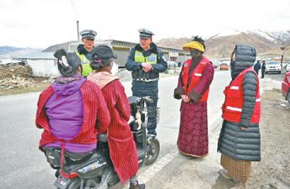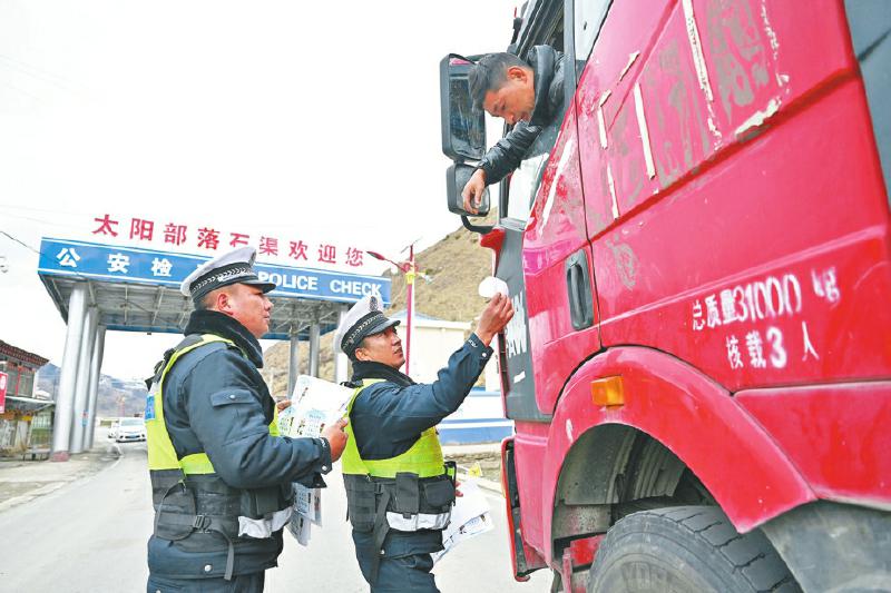 “师傅您好,开车时请牢记自我告诫、检查车况、全员系安全带这三件事。”在石渠县的门户——国营牧场公安检查站,石渠县公安局交警大队的民辅警对过往车辆的驾驶员进行着道路交通安全提醒。