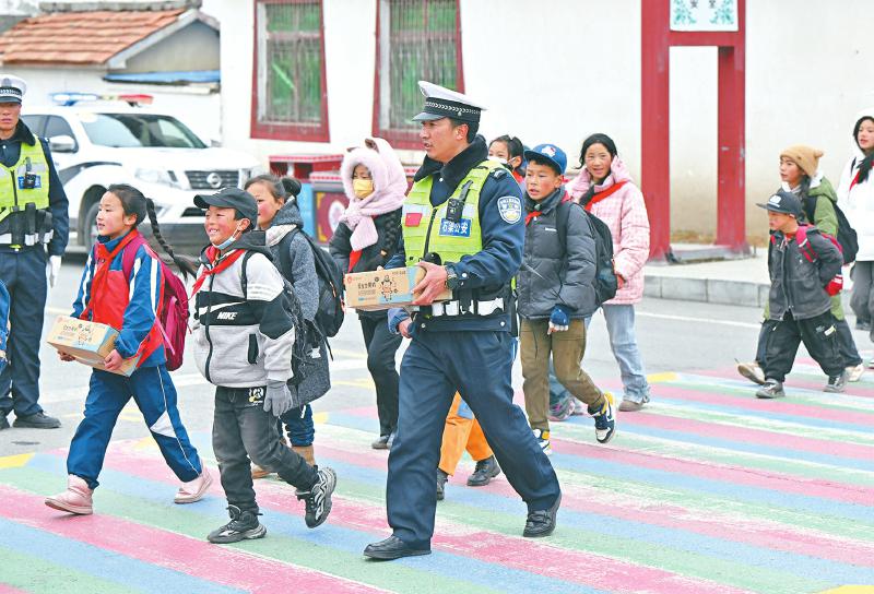 民有所盼,警有所为。石渠县公安局交警大队设立“护学岗”,通过交警叔叔大手拉小手,护航孩子们的上学“平安路”。现在,每当上下学时间,在石渠县各中小学校门口,都能看见交警风雨无阻地指挥交通、护送孩子们过马路的身影。“缺氧不缺信仰,缺氧不缺爱心”。石渠县公安局交警大队还是一支充满爱心的警队。曾获得“四川省十大最美志愿者”殊荣的普布泽仁,是石渠县公安局交警大队辅警,从警14年的他做了14年公益。由于工作原因,普布泽仁常常遇见因交通事故受伤的贫困者,他二话不说摸出两三百元钱塞到对方手里是常事。普布泽仁个人累计向贫困儿童和孤寡老人捐助的财物共计价值30余万元,他联系爱心人士陆续资助困难群体近百万元。普布泽仁的善心还带动了许多身边人,石渠县公安局局长敦清、石渠县公安局交警大队的同事们都加入到他的爱心团队,慈善路上,越来越多的人与他牵手同行。