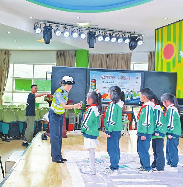 交警结合事故案例,用通俗易懂的语言深入浅出地讲解了交通安全的重要性。通过知识宣讲、发放宣传资料等环节,传授安全出行常识,教导大家正确识别交通标志,全面掌握安全行走、安全乘车、“一盔一带”等相关交通安全知识,主动做到“知危险、会避险”。根据孩子们的年龄特点,交警现场设计十字路口场景模拟,邀请学生上台共同完成路口过斑马线演练,通过与学生们现场互动,你问我答,将交通安全常识融入在互动中,进一步加深学生们对交通安全知识的认识。同时,交警还引导同学们积极发挥“小手拉大手”的效应,把学到的交通安全知识说给父母、长辈听,在日常交通出行中自觉摒弃陋习,把守法和安全放在首位。 四川法治报全媒体记者 熊勇 摄影报道