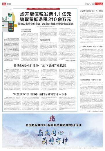 本报讯(四川法治报全媒体记者 张磊 陈博)一个犯罪团伙通过“地下钱庄”非法经营外汇业务并配合其他公司从事骗取留抵退税犯罪活动25人落网……昨(15)日记者从省公安厅主办
