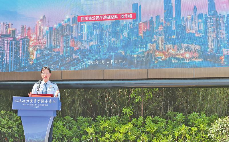 当天,两位“2023年度四川十大法治人物”,广元市昭化区委常委、政法委书记苏科年与省公安厅法制总队副总队长、二级高级警长周华梅携手翠云廊景区讲解员龙林,讲述了一个又一个以法治力量守护绿水青山的故事。