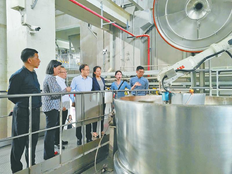 泸州因酒而兴、以酒闻名,科技创新同样驱动着传统酒业的发展。在国家固态酿造工程技术研究中心、泸州老窖黄舣智能酿造车间,执法检查组实地观摩了泸州老窖的拌糟系统和自动化、智能化酿造,制曲装备等。“拌糟是酿酒的重要工艺流程之一,这款拌糟系统能根据传统人工拌糟工艺和主要控制指标,采用无重力二维拌合机将母糟、粮食、稻壳均匀拌合,整个过程仅需要1.5分钟,大大节约了人力物力。”泸州老窖相关负责人介绍说。