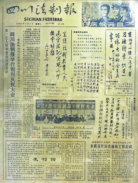 1984年10月1日,《四川法制报》开始试刊;1985年1月1日,《四川法制报》正式创刊。上图为《四川法制报》创刊号
