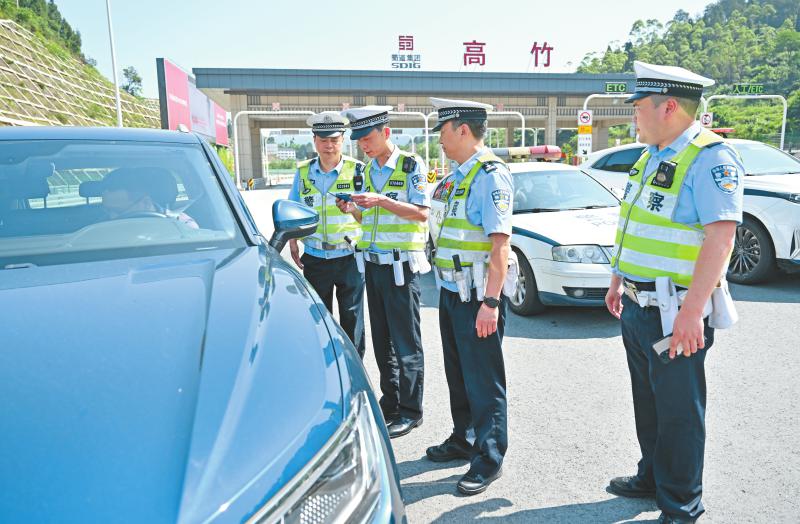 在高竹收费站,川渝两地高速交警严查超速、超员、疲劳驾驶、酒驾醉驾等交通违法行为