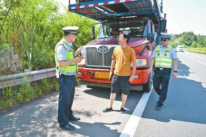 “师傅,你这种行为非常危险,车辆发生故障在靠边后要立即报警,人要撤离到护栏外,你看你的三角警示牌就放个10来米远。”24日上午,省公安厅交警总队高速公路五支队二十四大队广安警务组组长杨训和指导员向向东在安全巡逻中,发现一辆重庆牌照的大货车由于爆胎不按规定停在了应急车道,存在很大的安全隐患。停车点位于川渝交界处,货车即将驶入重庆地界,杨训同时将该安全隐患报送给了重庆市公安局交巡警总队高速公路一支队合川大队。为提升执法质效,近年来,二十四大队与合川大队、重庆市交通运输综合行政执法总队高速公路一支队五大队建立了区域协作的交通联合执法长效机制,注重畅通情报信息交互渠道,强化跨省情报共享。在雨雾等恶劣天气信息互通,重点查处往来于川渝两地的“三超一疲劳”、非法营运等各类重点违法行为上,成效突出。