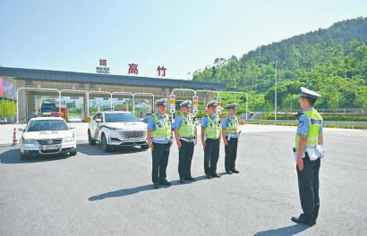 九大队对高竹收费站路段进行重点管控,切实保障出入川渝高竹新区车辆的交通安全
