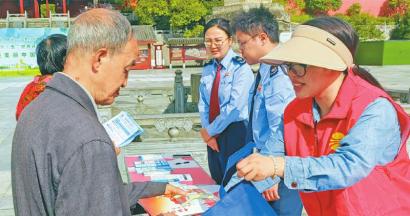 平武县司法局普法志愿者向群众发放环保宣传手册 代小玲 崔露月 赵银熙 摄