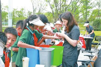 四川天府新区法院、成都铁路运输第二法院向天府新区美岸小学学生介绍垃圾分类等环保知识 成铁二院供图
