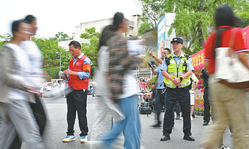 如今,老徐虽然早已退休,但热衷于参加治安巡防、院落守护等社区志愿者服务活动。2021年6月,老徐听说社区正在招募“护航高考”的志愿者,协助公安机关开展维护秩序、服务考生等工作,他毫不犹豫地报了名,从此以后年年参加。作为一名特巡警,小徐也已经连续15年在高考考场外执勤了。