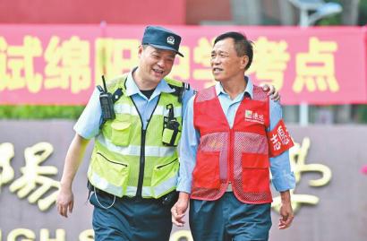 除了老徐父子俩,在绵阳市各个考场外,都有民辅警护航莘莘学子追梦之路的身影。为了给广大考生营造一个安静、舒适的迎考环境,绵阳市公安局充分履行公安机关职能职责,多警种参战全力护航高考顺利平安。