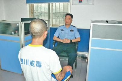 戒毒民警与小宇谈心谈话,鼓励他树立戒治信心省成都强戒所供图