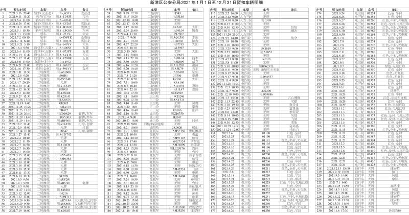 附件:新津区公安分局2021年1月1日—2021年12月31日暂扣车辆明细