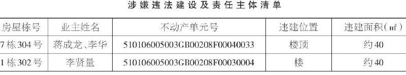 成都市金牛区盛业路433号保利国宾首府二期小区涉嫌违法建设责任主体(具体涉嫌的违法建设房屋栋号及责任主体业主姓名详见本公告后附的清单):