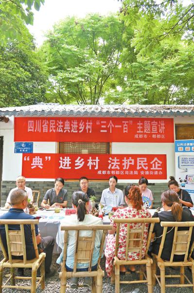 今年“民法典宣传月”主题为“‘典’进乡村 法护民企”。如何运用民法典保护民营企业的合法权益?如何让“法律明白人”帮助小微企业化解矛盾纠纷?如何发挥“法律明白人”在优化村级经济体营商环境的作用?……“民法典宣传月”活动开展以来,成都市百名“法律明白人”和村(居)法律顾问深入百个村(社区)和民营企业共同开展法治宣讲。