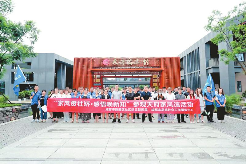 本报讯(廖安泰 四川法治报全媒体记者陈博 文/图)为深入贯彻党的二十大精神和习近平总书记关于注重家风家教建设的重要指示,按照《2024年成都市新都区社区矫正“三新”主题教育活动实施方案》要求,3日,成都市新都区社区矫正管理局联合成都市品德社会工作服务中心,组织辖区内社区矫正对象150余人在天府家风馆开展“家风贯社矫·感悟唤新知”参访主题教育活动,此次活动旨在通过培养社区矫正对象的家风教育和家风传承意识,增强社区矫正对象社会责任感,切实提升社区矫正质效。