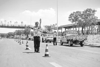 7月12日,宁夏石嘴山市公安局交通警察分局惠农大队民警在滨河大道设点开展路检路查 受访单位供图