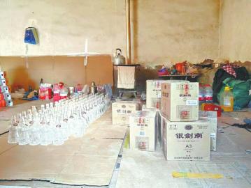 据嫌疑人交代,为获取暴利,他们以王某某父亲的名义在甘肃某地租下两处房屋作为生产窝点,又从当地五金店购买铆钉枪、橡胶锤等打孔工具,并在当地不同酒店、废品回收站购买空酒瓶等。接着,把低等次的酒灌装进高档酒瓶中,再粘贴上防伪标示等包装材料。最后再四处流窜推销。就这样,一瓶瓶以次充好、以假乱真的“高档酒”流入市场。