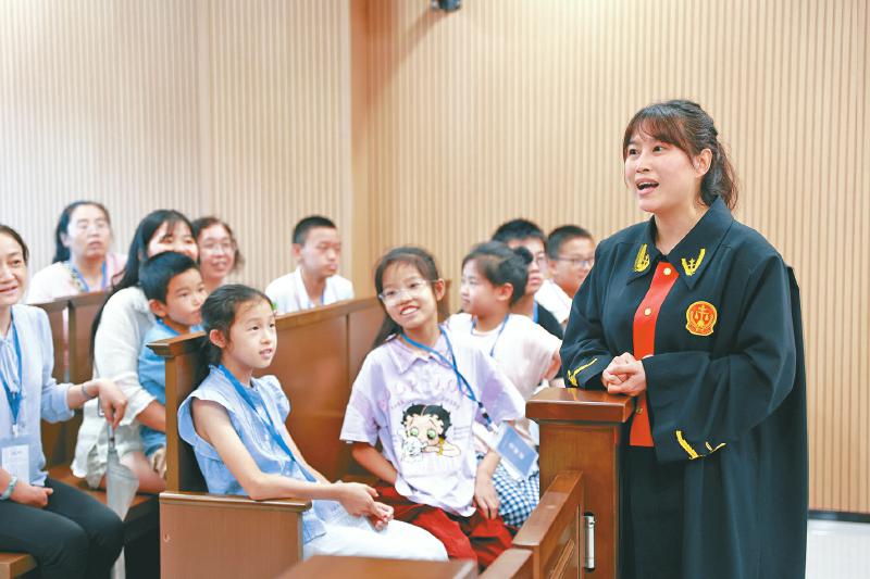 近日,成都市锦江区法院迎来了一批“特别的客人”,来自成师附小的15名学生在家长的带领下开启“法院开放日”暑假专场之旅。