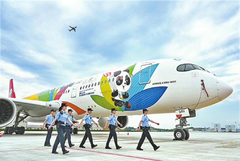省公安厅机场公安局天府机场分局的民警用“警察蓝”护航“蓉火红”