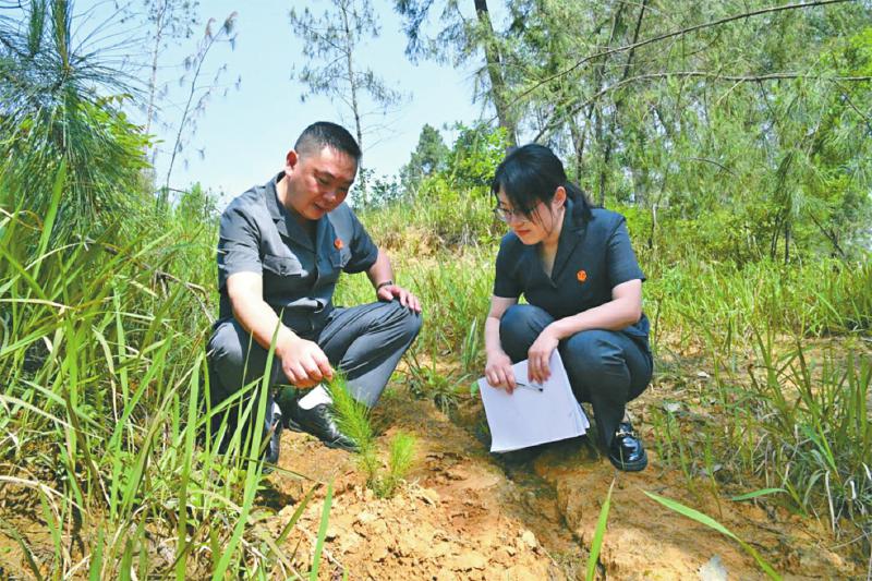 柳垭镇回龙观村傍山而建,依水而居。在村子里,有一块撂荒地整治地域,曾种满了松树,有人却对此动起了“歪脑筋”。经鉴定,被告人储某某共砍伐松树900余株。为顺应春季种植时节,确保补植成活率,承办法官建议被告人立即补植复绿、修复生态环境,以示积极认罪悔罪。储某某按要求在其犯罪行为实施地补植树苗1000余株。案件宣判前,仪陇县法院承办法官和公诉人共同前往柳垭镇回龙观村,对储某某补植复绿、修复生态情况进行实地检查、验收,详细查看松树、柏树等苗木生长情况,并用无人机勘查了苗木种植面积。
