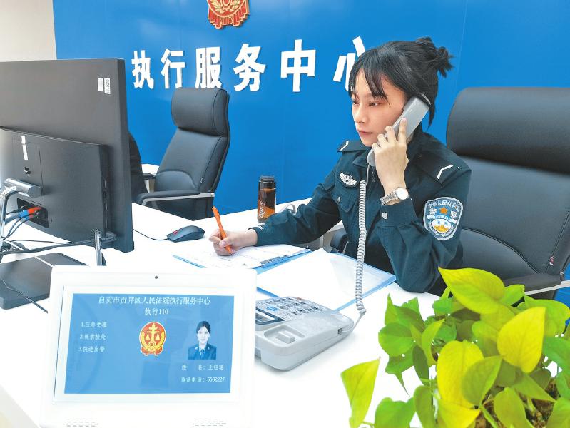 “您好,这里是‘执行110’,请问有什么可以帮您?”贡井区法院执行服务中心“执行110”接警员正全神贯注地盯着电脑屏幕。一部电话、一台电脑,训练有素地询问记录,迅速开展派警工作……贡井区法院开通“执行110”24小时举报热线0813-8325110,实行快速响应机制,收集被执行人行踪和财产线索,无缝隙常态化执行,轮流值班值守,24小时不打烊。